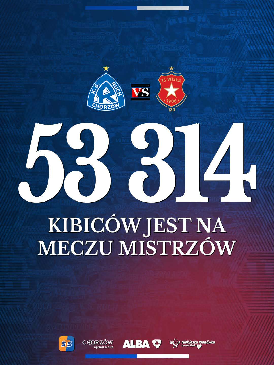 Już przed pierwszym gwizdkiem było wiadomo, że to nie będzie zwykły pierwszoligowy mecz. Ruch i Wisła znowu przyciągnęły do Chorzowa tłumy, a Stadion Śląski po raz kolejny pokazał, że wciąż jest miejscem stworzonym do wielkich piłkarskich wydarzeń. Na trybunach zasiadło 53 314 osób, więcej niż podczas poprzedniego rekordowego spotkania tych drużyn, gdy w lutym 2025 roku mecz oglądały 53 293 osoby.