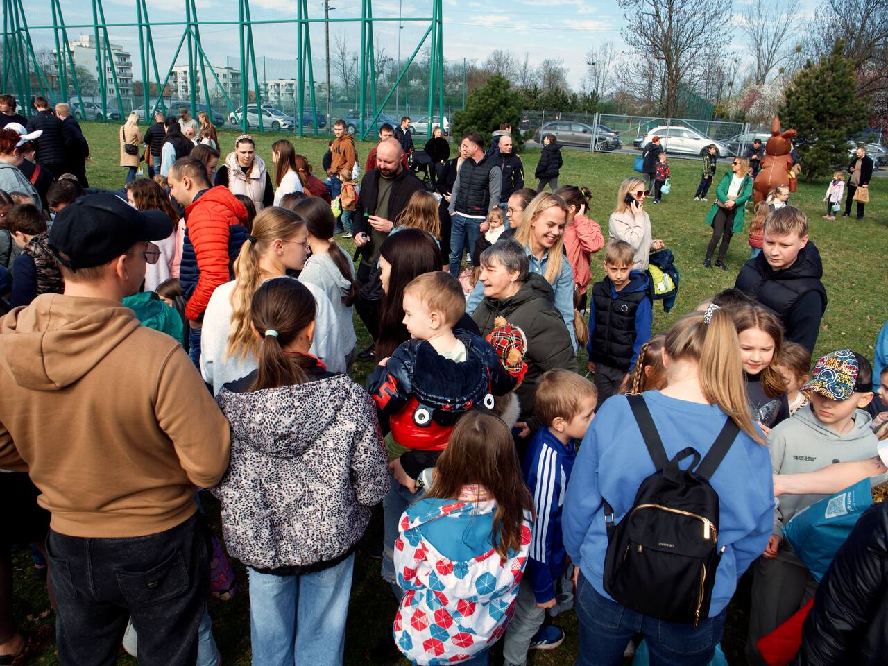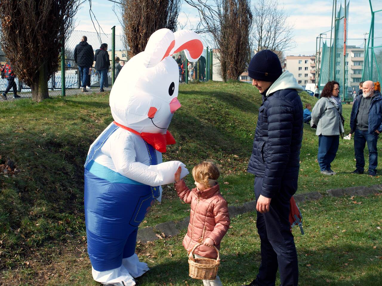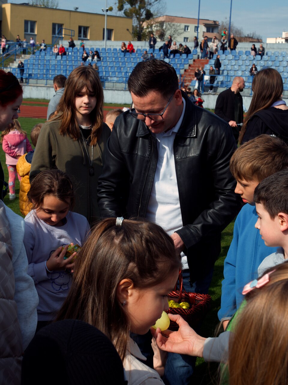 Dzieci z ogromnym zaangażowaniem ruszyły na poszukiwanie czekoladowych jajek, a wspólna zabawa szybko zamieniła stadion w miejsce pełne śmiechu i radości. W wydarzeniu uczestniczył także prezydent Chorzowa Szymon Michałek. Obecni byli również miejscy radni, którzy razem z mieszkańcami włączyli się w świąteczne spotkanie.